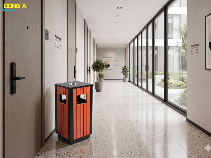 Tại các sảnh chung cư, lối đi bộ hay chân các tòa nhà, việc đặt một chiếc thùng rác gỗ giúp nâng tầm giá trị của dự án. Cư dân sẽ cảm nhận được sự chăm chút trong từng chi tiết nhỏ nhất của đơn vị quản lý.