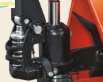 Bánh xe: Xe nâng tay 2000kg thường sử dụng bánh PU (Polyurethane) hoặc Nylon. Bánh PU phù hợp sàn nhẵn, giảm tiếng ồn, bám dính tốt. Bánh Nylon phù hợp sàn gồ ghề, chịu tải tốt, ít bị mài mòn.