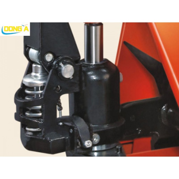 Bơm thủy lực: Dạng pít-tông, hoạt động nhờ sức người tác động lên tay cầm để hút và đẩy dầu vào xi-lanh, tạo lực nâng.